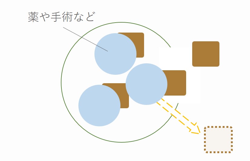薬や手術などで、侵入者(不調の原因)をとりのぞくイメージです。西洋医学における治療法は、SPのような役割といえるでしょう。